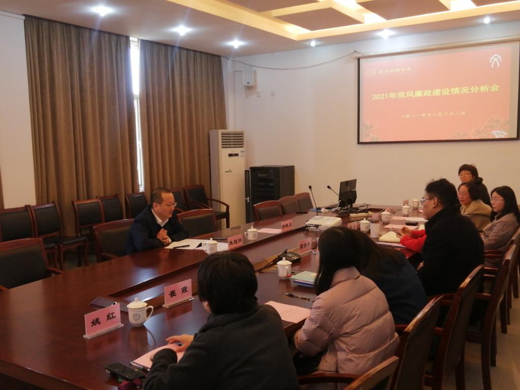为进一步落实全面从严治党要求,根据学校统一部署,2021年12月22日上午,suncitygroup太阳成集团党委召开2021年度党风廉政建设分析会。校纪委委员、机关党委专职副书记朱旭明到会指导。会议由学院党委书记高燕主持。 高燕代表学院党委对履行党风廉政建设主体责任情...