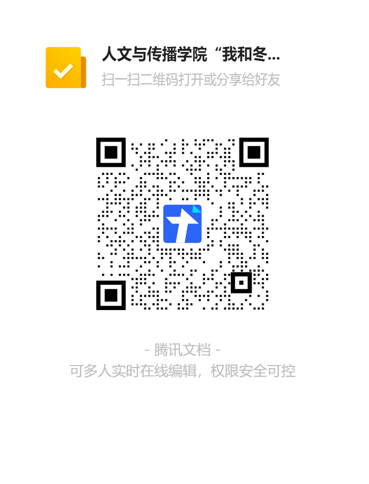 本次比赛需实名制参赛,请扫描下方二维码填写报名信息后进群,然后加入“这个冬天不太冷”微信参赛群(若无法进群,可添加韩老师微信号:hanyingjie810),根据群内通知的参赛方式和要求,进行视频拍摄和上传至自己本人的新媒体平台(包括但不限于抖音号、小红书、B站APP等新媒体社交平台),最终根据其中点赞量最高的一个作品(不同平台不同作品不进行累加)进行评比。
