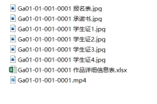 注:报名承诺书需要电子签名,最后必须以zip或rar压缩包整理所有文件,文件命名同作品文件,可参看下列图示举例: