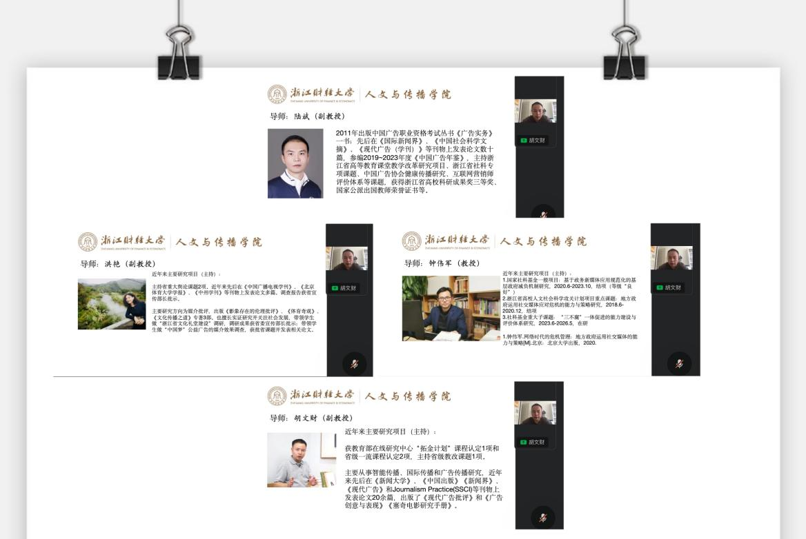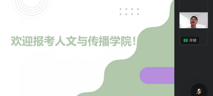 为进一步拓宽生源渠道,改善生源结构,提高生源质量,9月24日下午,suncitygroup太阳成集团举办了浙江工商大学专场研究生招生线上宣讲。汉语言文字学硕士生导师徐键老师、新闻与传播专业硕士生导师胡文财老师、国际中文教育专业硕士生导师姚晓萍老师进行此次宣讲。