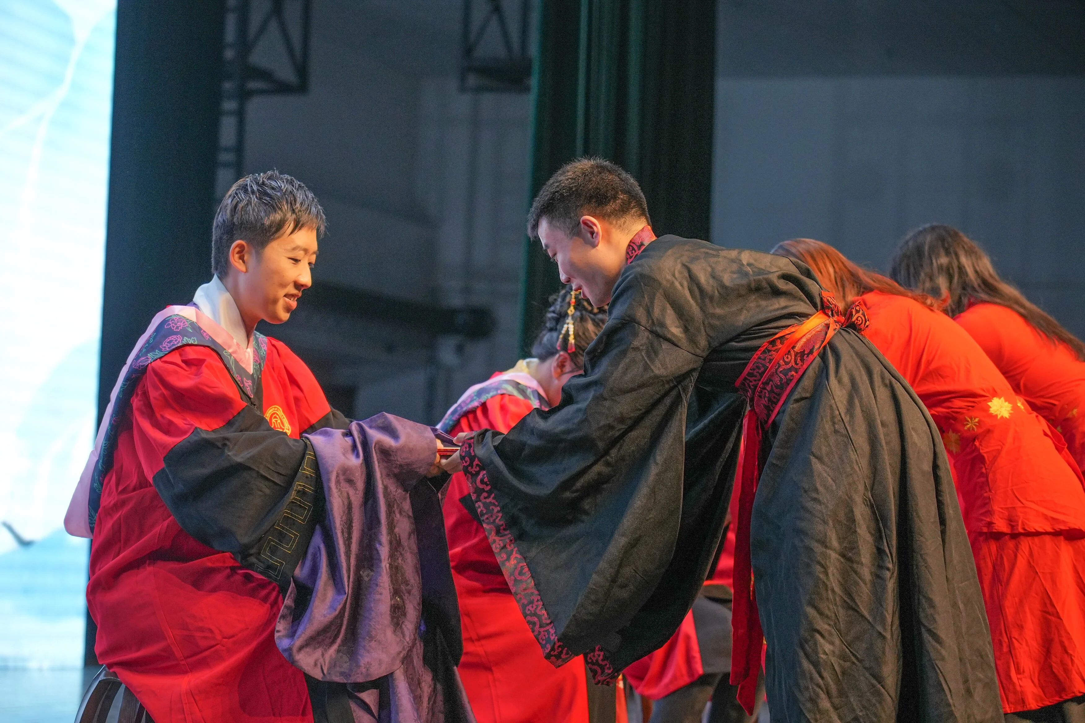 四年前,于学涯湖畔,2021级新生代表们怀揣着对知识的渴望和对未来的期许,亲手将拜师帖递至新生班主任手中,开启一段师生缘分;四年后,太阳成毕业生代表带着沉甸甸的学习成果,再次将谢师帖献至班主任手上,感恩各位老师们的倾囊相授。听学子,述胸中锦绣,而学子情深,师者意重,赵文源老师也对学子们进行了训示。师生执手话别,倾诉离情,互勉未来,合影存念。
