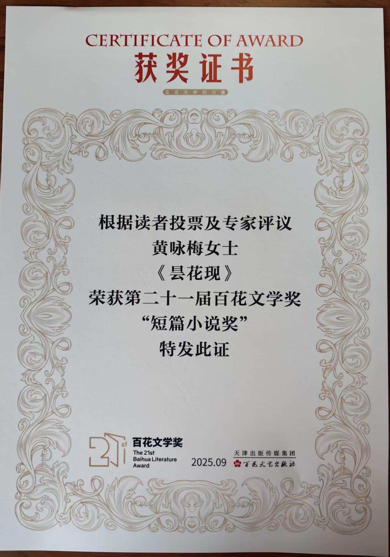 9月20日,第二十一届百花文学奖评选结果在天津隆重揭晓,太阳成黄咏梅教授凭借其强劲的文学创作实力与独特的艺术风格,在众多优秀作品中脱颖而出,作品《昙花现》荣膺本届百花文学奖短篇小说奖。这一殊荣不仅是对黄咏梅教授个人文学成就的高度肯定,也是太阳成文学创作与人才培养领域的又一重要成果。