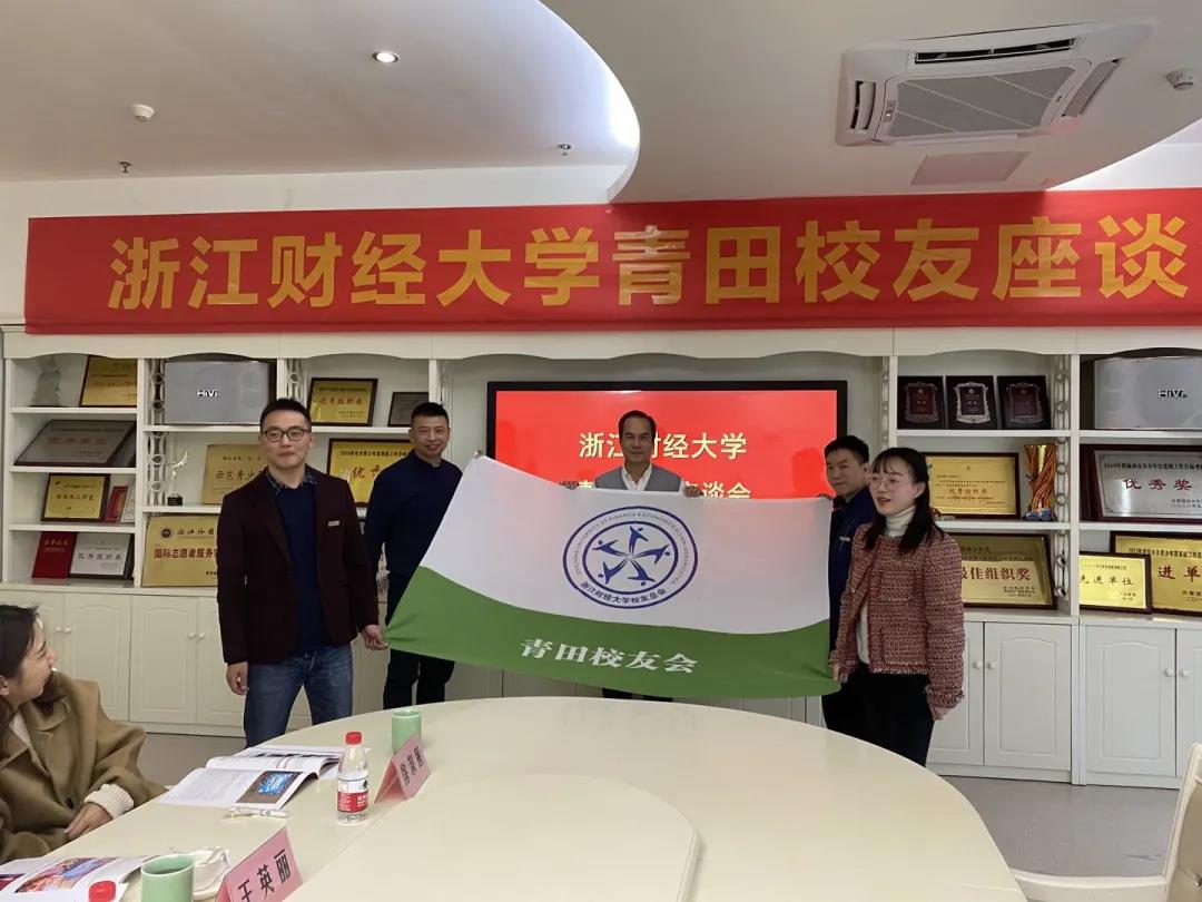 王奎泉向青田校友会授旗并向新增补的会长、副会长、秘书长、副秘书长颁发聘书。