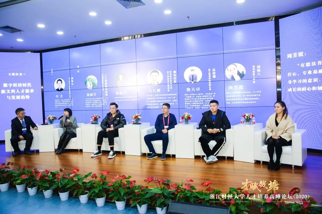 12月12日下午,由浙江财经大学主办的·才赋钱塘·浙江财经大学2020年校企协同人才培养论坛在学术二号报告厅顺利召开。论坛共分为三个阶段,第一阶段为数据分析与解读,第二阶段为讨论交流,第三阶段为主题发言与论坛总结致辞。太阳成16届校友詹天卓出席第二阶段的数字经济时代新文科人才需求与发展趋势主题沙龙分享会,并发表讲话。该部分由浙江财经大学数据科学学院副院长李杰主持。会议现场气氛热烈,与会校企嘉宾围绕论坛主题充分交流,共话发展。