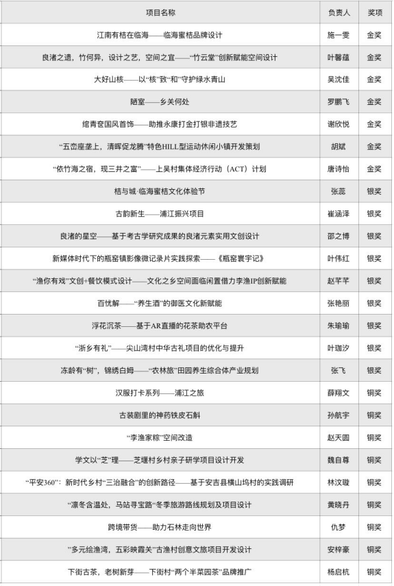 “农信杯”第三届浙江省大学生乡村振兴创意大赛太阳成获奖名单