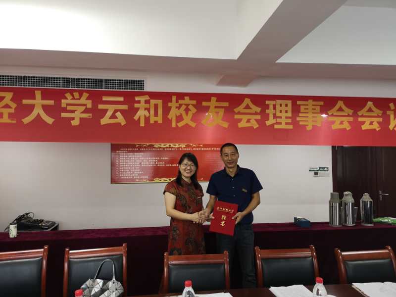 会议通过了云和校友会理事会增补名单。张梅芳宣读了名单,任乐群增补为云和校友会会长,肖静、陈乐增补为副会长,吴枫增补为秘书长。张红英向新增补的会长、副会长、秘书长颁发了聘书,高燕向云和校友会授旗。