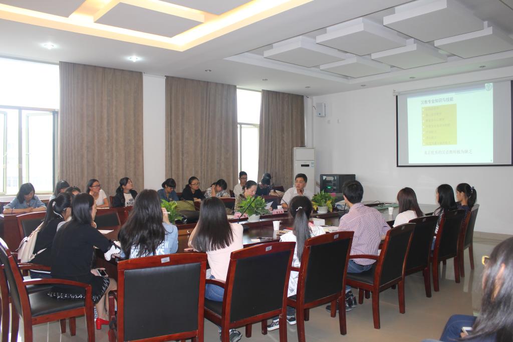 姚院长对张黎教授等来访表示了热烈的欢迎,随后姚院长和孙老师介绍了太阳成汉语国际教育专业的人才培养模式、学生就业、专业特色及创新、课程改革等方面的情况,希望张黎教授一行能提出宝贵的建议。