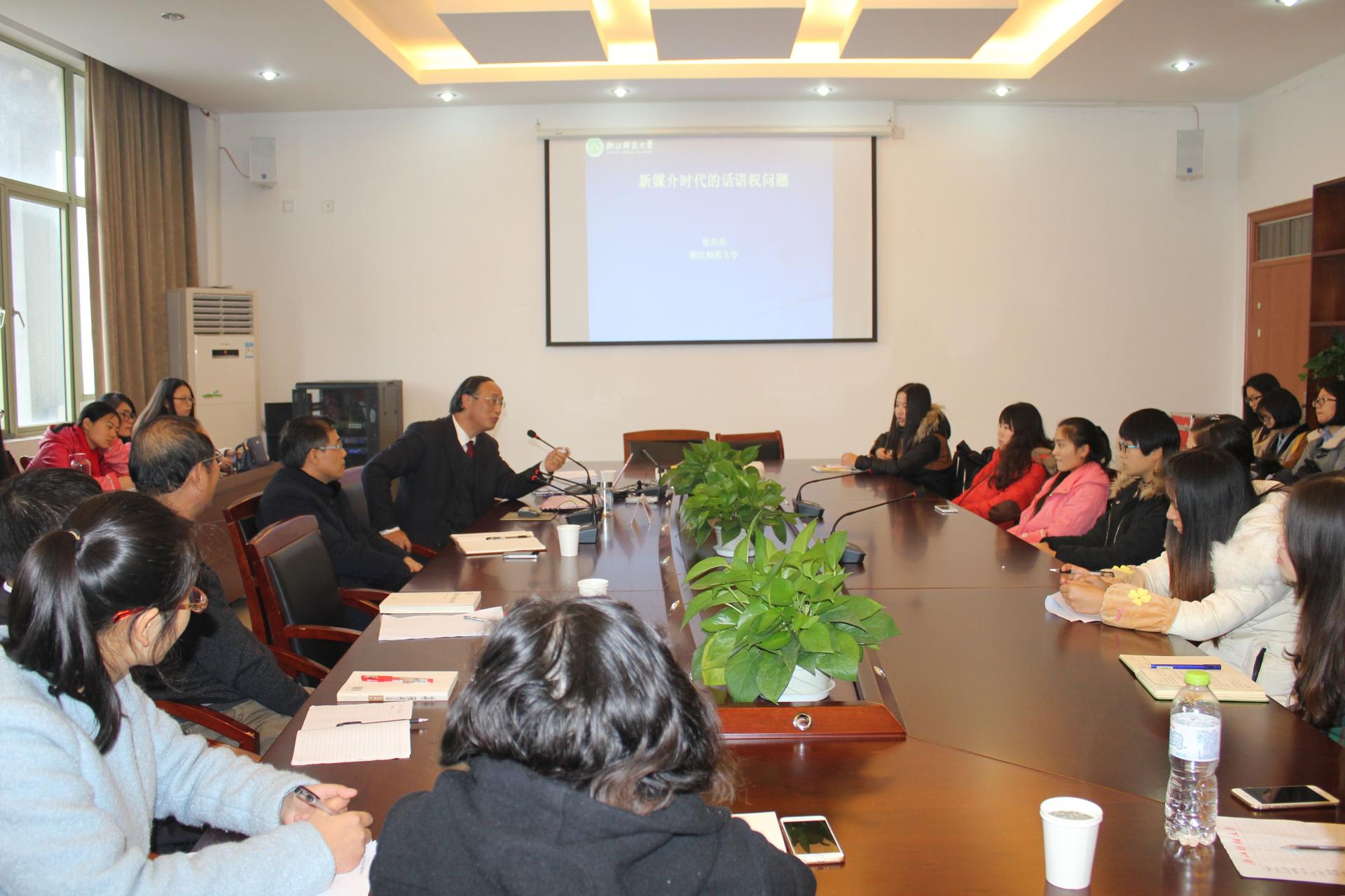 2015年12月25日下午,浙江师范大学党委副书记张先亮教授应邀来太阳成作了题为《新媒介时代的话语权问题》的学术讲座。太阳成部分教师、汉语言文字学全体硕士研究生及传播学部分本科生参与聆听了此次讲座。讲座由太阳成何华珍院长主持。