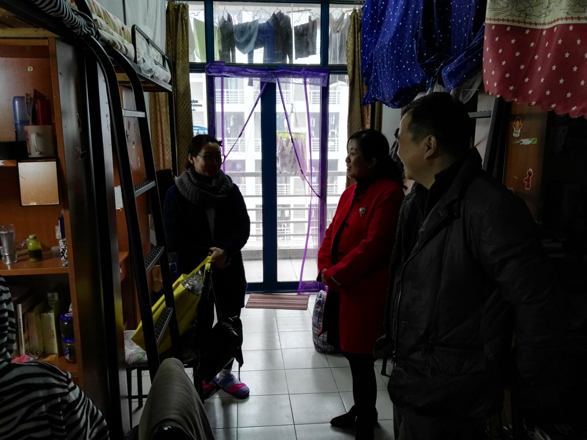 在走访过程中,高燕书记和吴玻书记在学生公寓中与同学们进行了亲切交谈,细心询问了同学们这一年来学习、生活、情感等各方面的情况,勉励自强学子要保持积极向上、乐观开朗的态度过好大学生活,踏实勤奋、努力坚持地走好自己的人生道路。