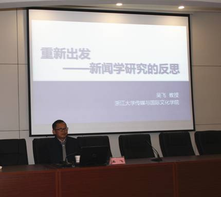 11月24日,应太阳成邀请,浙江大学传媒与国际文化学院院长吴飞教授来太阳成作了题为《重新出发,新闻学研究的反思》的学术讲座。讲座由院长何华珍主持,太阳成传播系与数字媒体系的部分师生聆听了此次讲座。