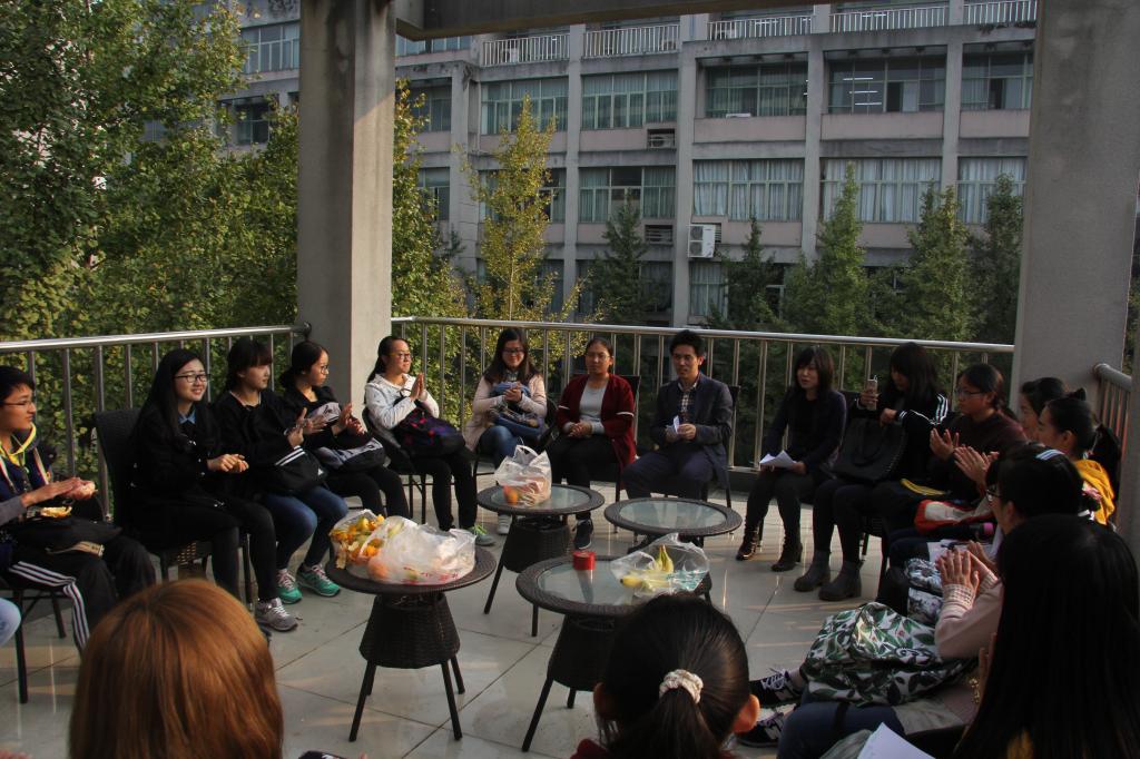 老师与同学们在学涯湖畔进行畅谈,中文系