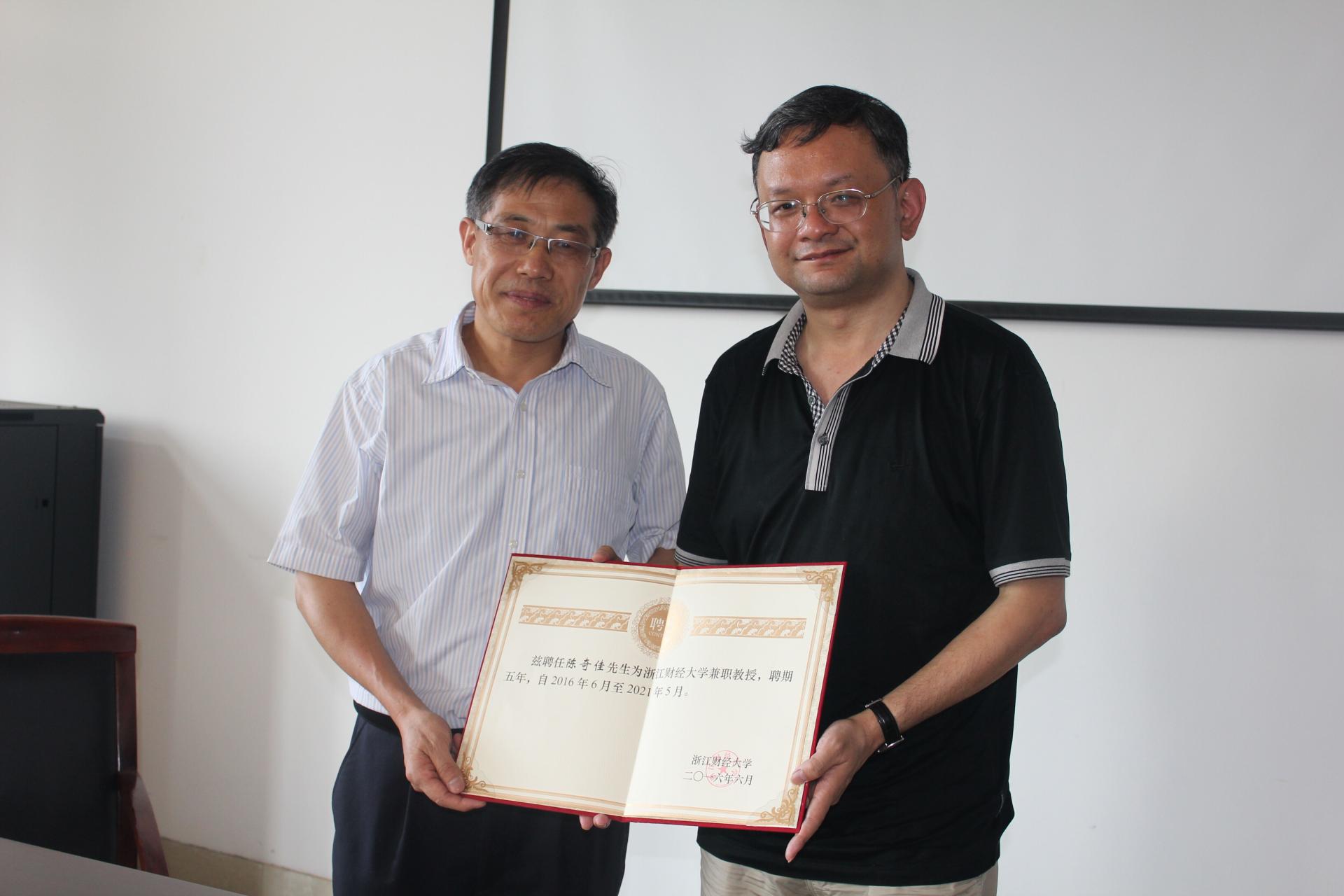 之后,何华珍院长为陈奇佳教授颁发了兼职教授证书。本次座谈会圆满结束。
