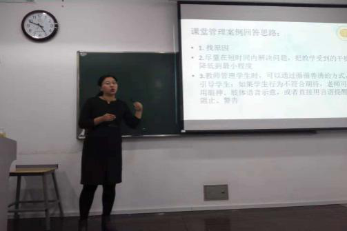 11月6日下午,太阳成汉语国际教育专业在A楼115教室开展了基地精英进课堂活动。由国际汉语系铁徽博士开设的专业选修课“对外汉语教学实践研究”邀请到上海早安汉语实习基地教学主管刘璇老师,以“国际化的汉语教学课堂组织管理与实践”为主题,为选课学生带来了一场别开生面的“汉语实践课”,同时也为部分大一新生上了一堂特别的“新生始业课”。