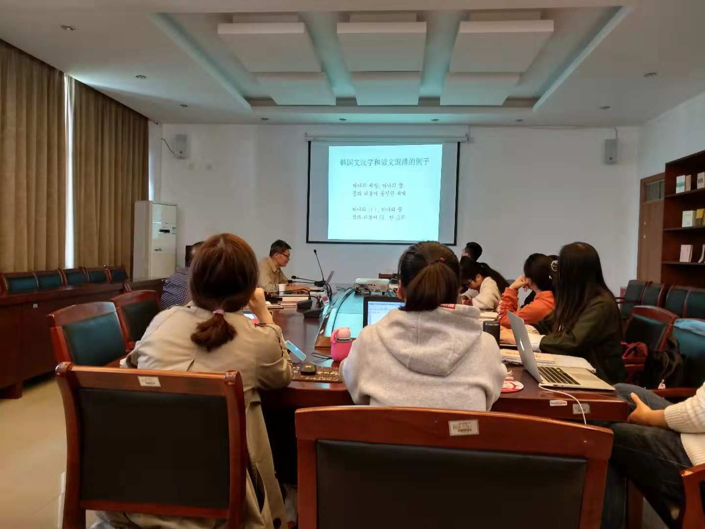 2018年10月24日下午,北京理工大学珠海学院图书馆高级馆员、多语言翻译家邓应烈先生应邀来工作坊进行座谈。此次座谈会由东亚汉字资源研究中心主任何华珍教授主持,工作坊有关师生参加了此次活动。