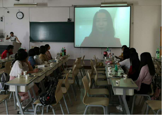 班会一开始,学业导师刘亚辉老师就通过微信视频连线正在新西兰担任国际汉语教师志愿者的我校17届毕业生陈盼盼,请她分享了自己考取北京师范大学汉语国际教育硕士,然后又以志愿者身份出国教学的经历和经验,分享了在新西兰的快乐教学和生活,激励新生们努力学习,提升自身的综合素质。