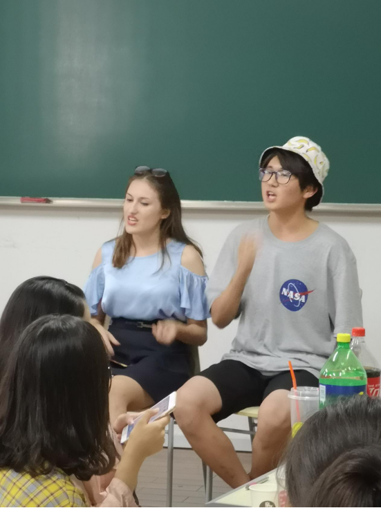 接下来是自由交流时间。品尝月饼、中国学生介绍国庆和中秋、互教简单口语……不仅让留学生们感受到了中华传统文化的魅力,同时也使中国学生们锻炼了自己的跨文化交流与沟通能力。