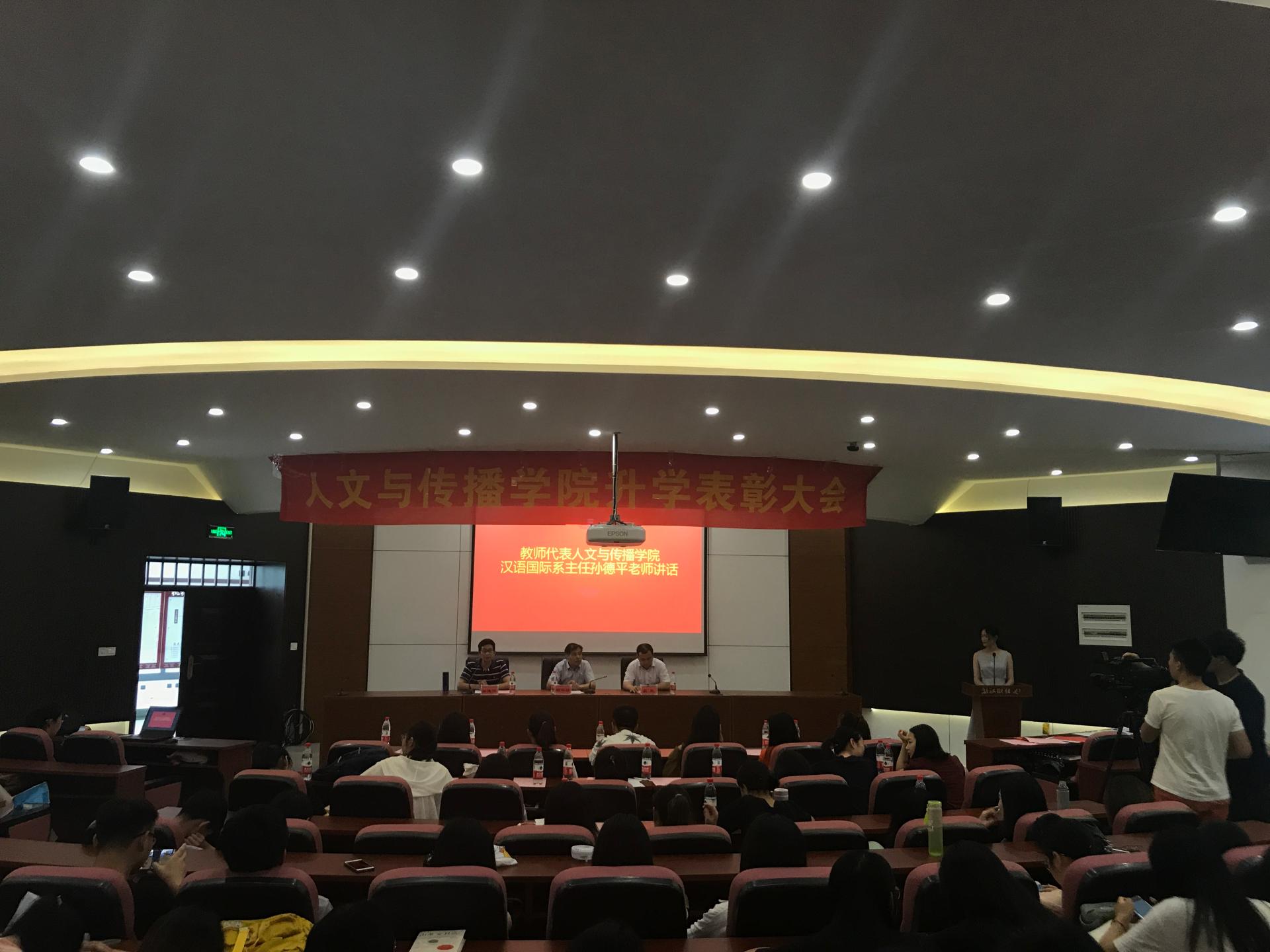 2018年5月29日下午14点,suncitygroup太阳成集团考研(出国)学生表彰大会在7号学院楼112报告厅举行。学院院长何华珍、党委副书记吴玻、汉语国际教育系主任孙德平,学院辅导员、2018届考取硕士研究生及出国深造的同学和2015、2016、2017级部分同学等参加了大会。
