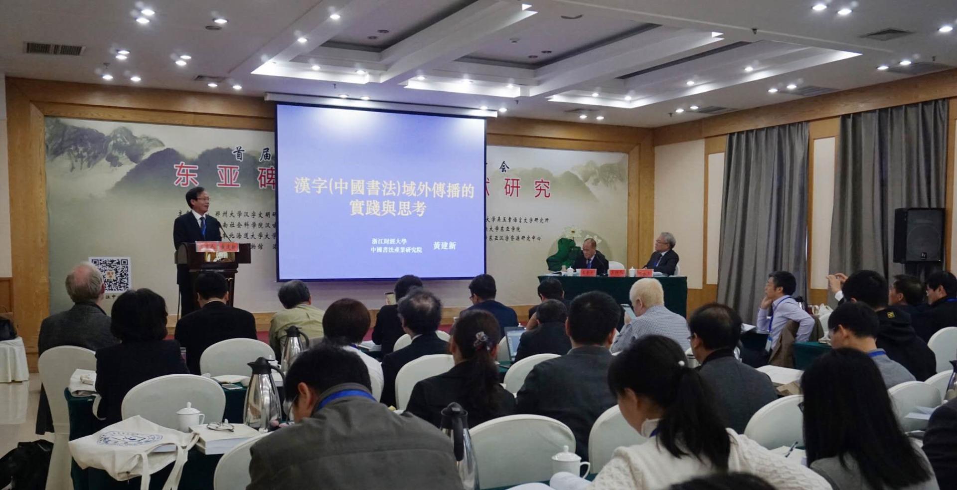 本次会议围绕“东亚碑刻汉字及文献研究”展开。黄建新教授作了题为《汉字(中国书法)域外传播的实践与思考》的大会报告,重点介绍了浙江财经大学的发展现状、分享了中国书法在域外传播的实践经历以及书法在域外传播的意义,受到与会专家学者的一致好评。期间黄建新副书记还受邀参观考察了郑州大学及相关研究机构。