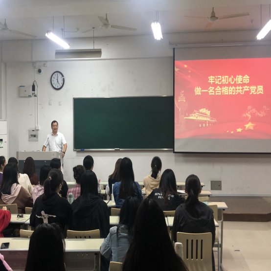 10月24日下午,学院党委副书记吴玻在A-107b教室以“牢记初心使命,做一名合格的共产党员”为题,给学生党员上了一堂主题教育专题党课。吴玻副书记结合自身学习体会和工作实际,向同学们介绍了“不忘初心、牢记使命”提出的背景,阐明了初心和使命“是什么”“如何践行”等问题。唯有不忘来时路,方能永葆初心、立足当下,着眼未来。课上吴玻副书记强调作为学生党员,应加强党性修养、坚定理想信念、严守行为规范、发扬优良作风、发挥模范作用,学好本领、提升能力,为建设中国特色社会主义伟大事业积极贡献力量。