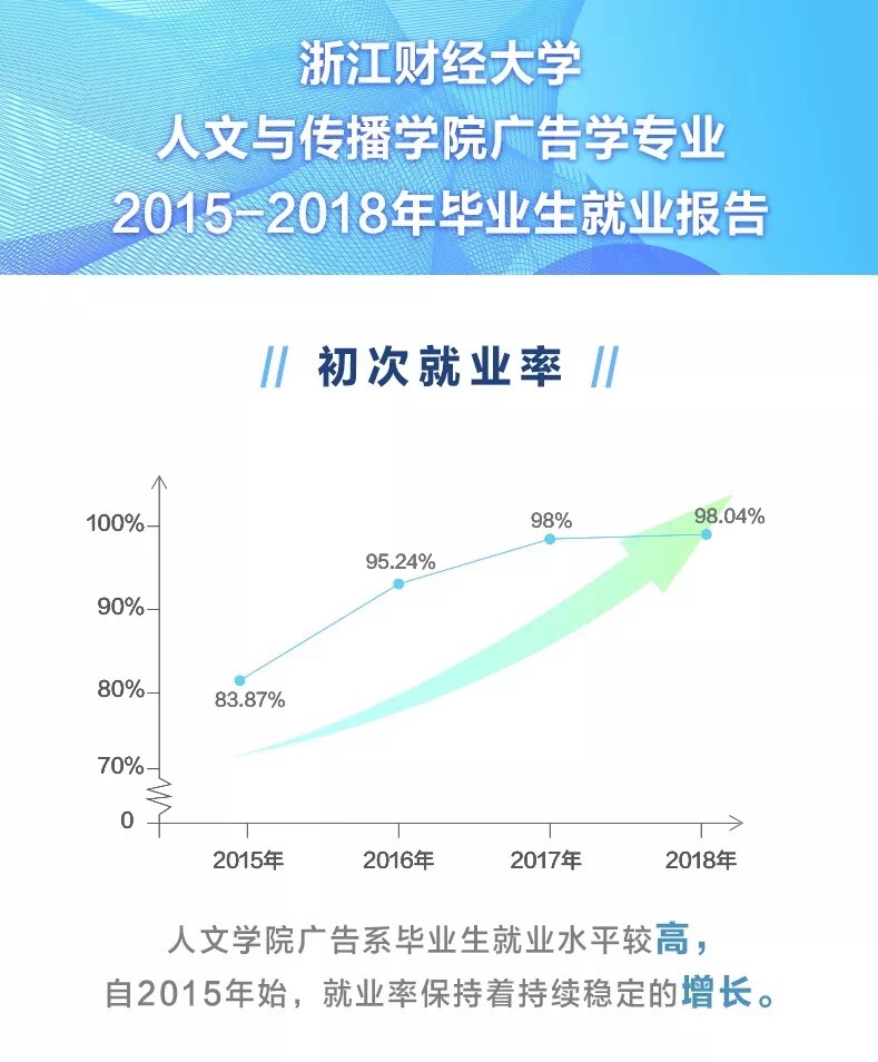 浙财广告学专业创立于2002年,至今已有17年的发展历史,专业教育扎实深厚,教学成果卓越。在2016年浙江省教育评估院的毕业生满意度调查中,太阳成广告学在专业满意度一项排名全校第一。