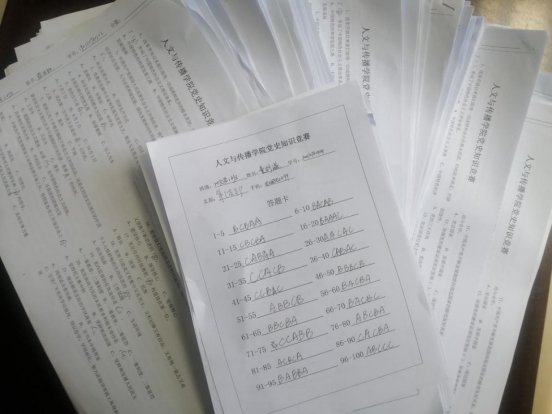 本次知识竞赛题目结合《中国共产党简史》、《中国共产党章程》、《中国近代史纲要》等多个学习资料,内容涉及党史、新中国史、改革开放史、社会主义发展史等多个方面。竞赛现场全体同学真读题,认真思考、专心作答。同学们纷纷表示要树立正确党史观,努力做到学史崇德、学史增信、学史力行,在今后的学习生活中,努力成为有理想、有情怀、有作为、有担当的新时代青年。