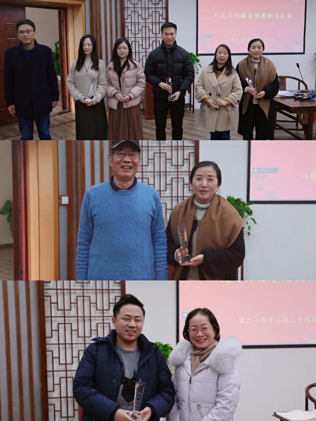 表彰会上,对17名“学习强国”学习中表现突出的党员进行表彰。对2021年度总积分排名各居前5名和前10名的师生、“四人赛”累计获胜局数排名各居学院第一名的师生、“挑战答题”中得分各居学院第一名的师生分别授予“学习之星”“学习达人”“挑战之星”荣誉称号,并颁发了奖杯及奖状。