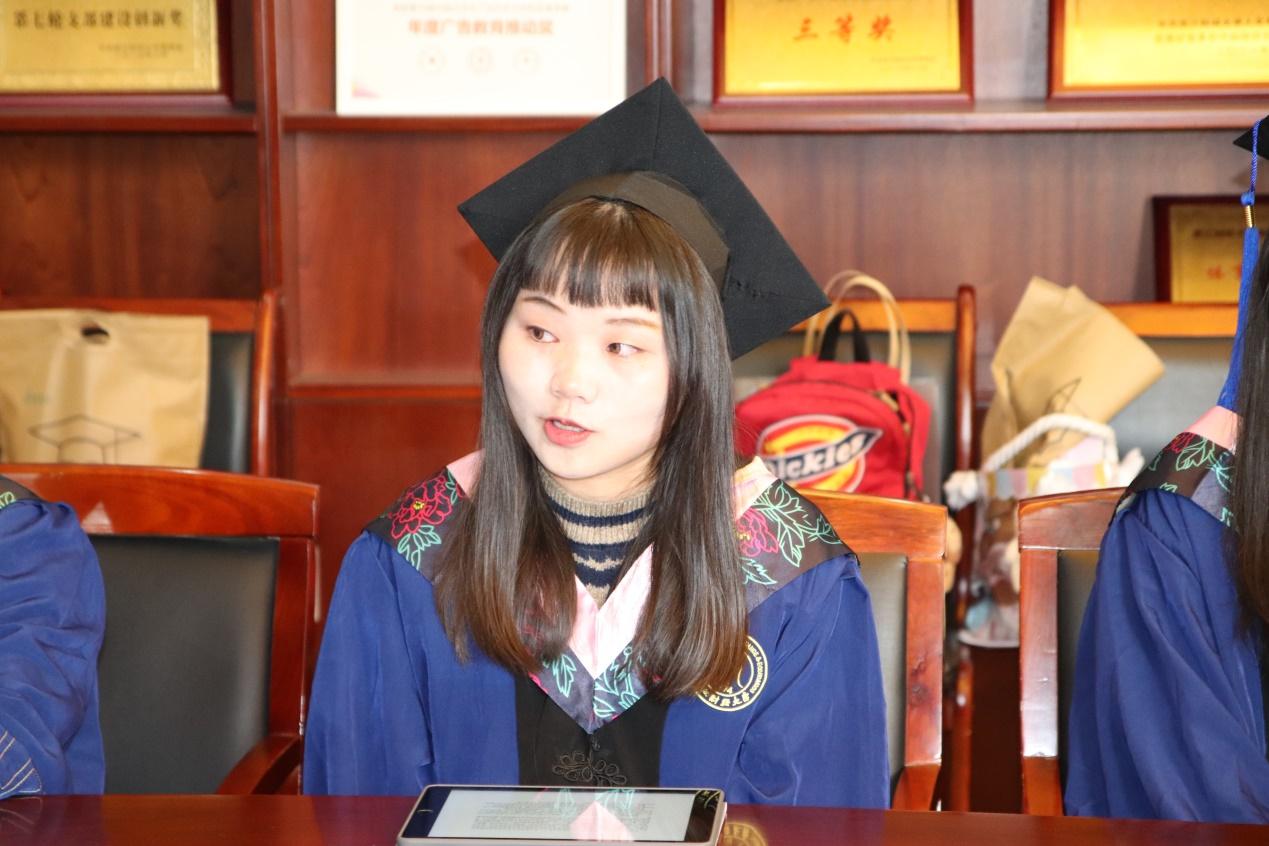 毕业生代表张梅霞代表2022届全体毕业生表达了对学院和老师们辛勤教导的诚挚感恩,对同学情谊和校园生活的浓浓不舍,对学院和老师们的深深祝福。