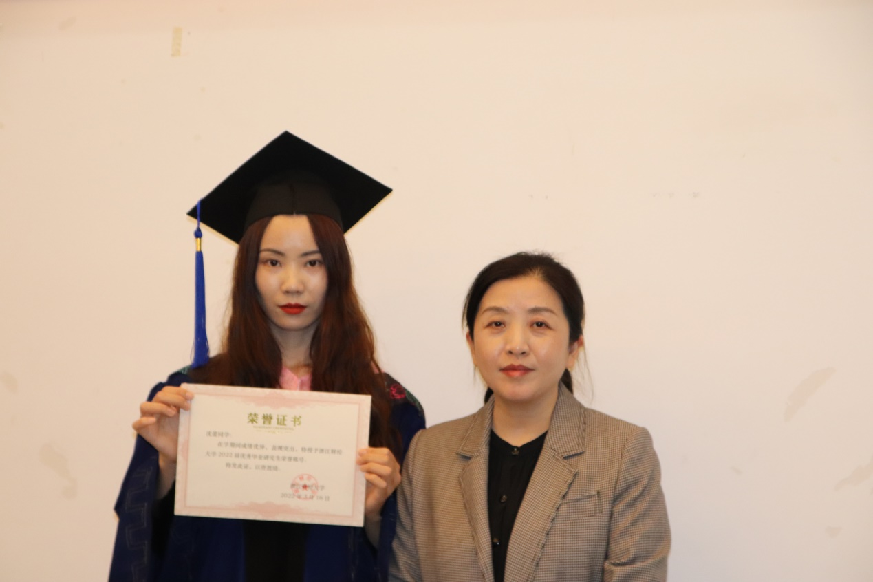 袁慧兰副书记宣读2022届研究生硕士学位授予名单。周保欣院长为毕业生颁发学位证书并为一一拨穗,完成学位授予。毕业生向导师们献上鲜花,在祝福和不舍的思绪中,毕业典礼接近尾声。