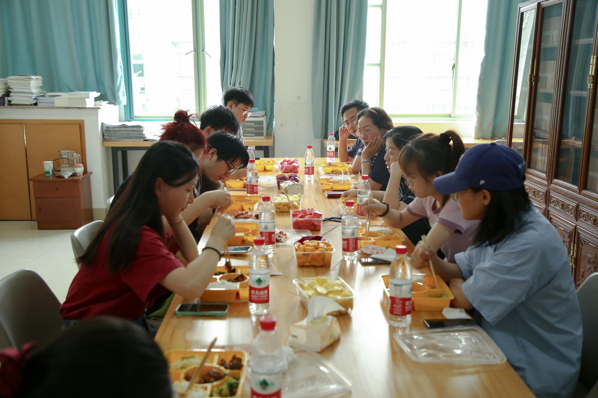 6月8日中午,人文与传播学院第二期“书记院长有约”活动在学院楼415举行,院党委书记高燕、院党委副书记袁慧兰、毕业班辅导员马羚凯老师和毕业生代表们进行了交流座谈,共进午餐。