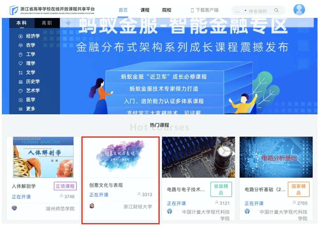 《创意文化与表现》在提升学业挑战度、增加课程难度和拓展课程深度方面取得了积极成效,多次获“省平台”首页推荐为热门课程,先后被认定为浙江省首批一流本科课程(混合式)和第二批一流本科课程(线上),并于2021年获我校和省教育厅推荐参加第二批国家一流本科课程评选。