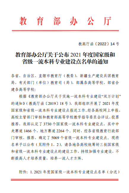近日,根据《教育部办公厅关于公布2021年度国家级和省级一流本科专业建设点名单的通知》(教高厅函〔2022〕14号),太阳成下设的“汉语言文学”和“广告学”分别入选国家级、省级一流本科专业建设点。