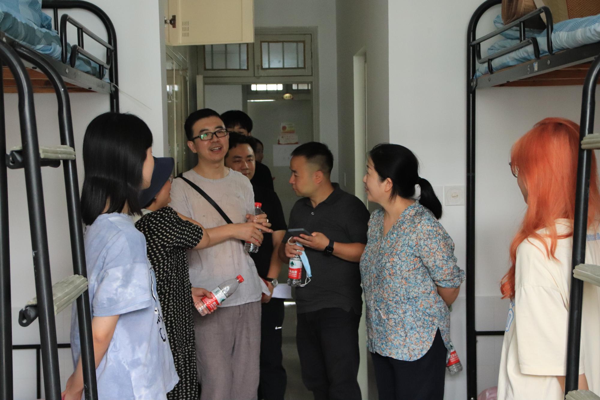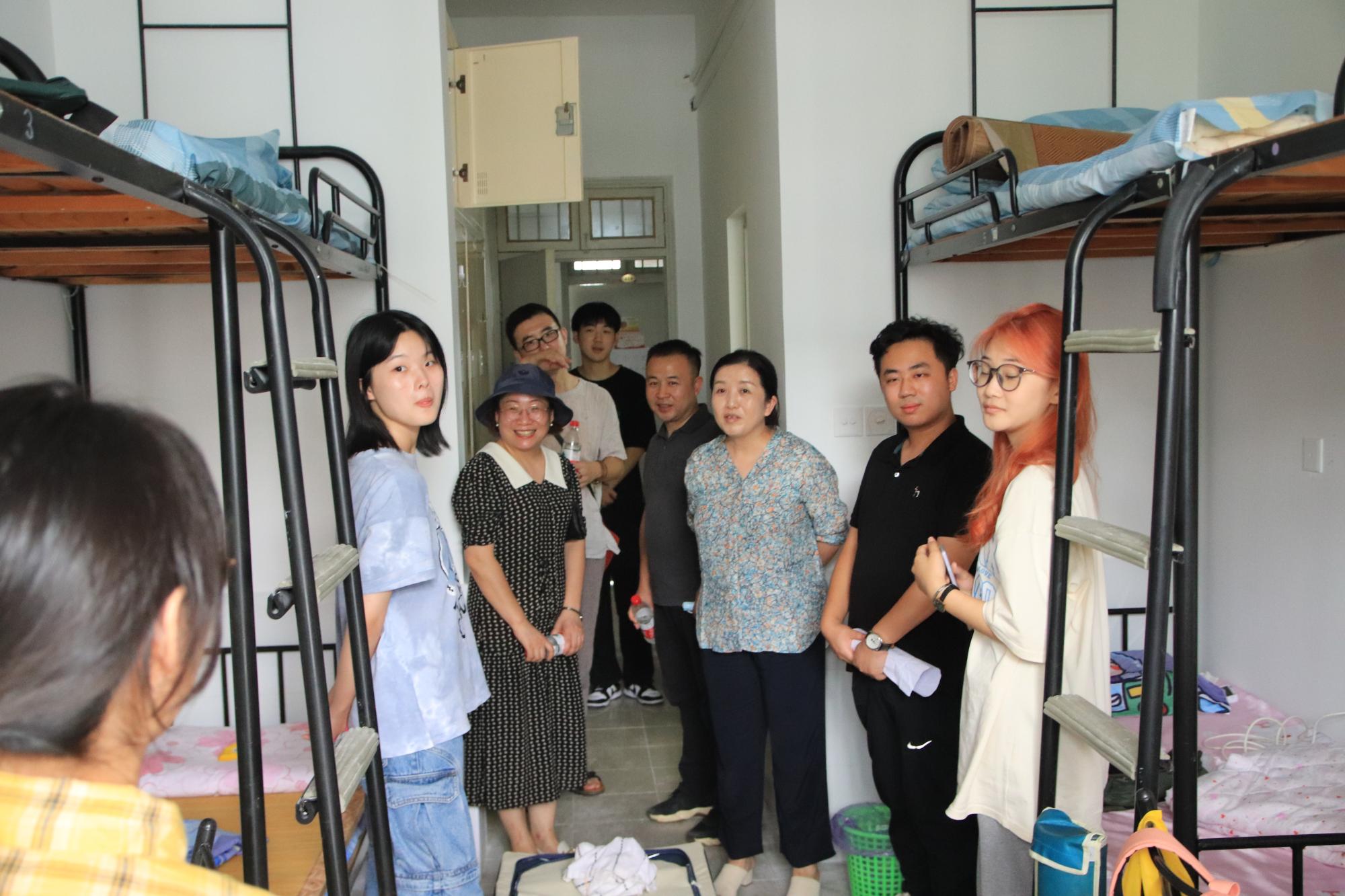 暑气渐消,微凉的风送来2022级的新生。8月28日,suncitygroup太阳成集团222位新生在现场工作人员的帮助下顺利完成报到,开启崭新的大学之旅。同日下午,太阳成党委书记高燕老师,副书记袁慧兰老师,两位新生班主任王阿蒙老师、胡文财老师,以及辅导员马羚凯老师来到迎新现场,问候迎新工作人员,随后走访新生寝室,热情聊天互动,拉进了彼此的距离。