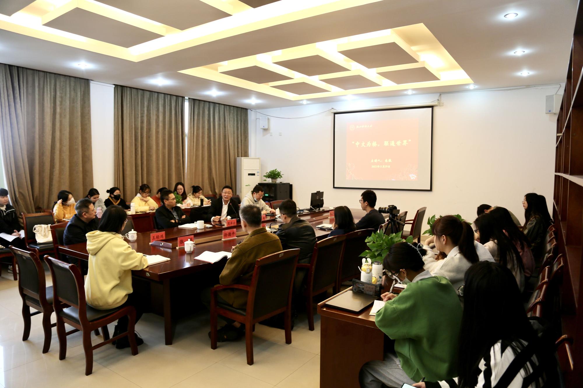 2022年11月29日下午,杭州哈兔中文网络学院院长朱敏应邀到太阳成做了题为《中文为桥,联通世界》的专题讲座,讲座由院长周保欣主持,太阳成汉语国际教育专业研究生、本科生及部分专业教师参加了此次讲座。