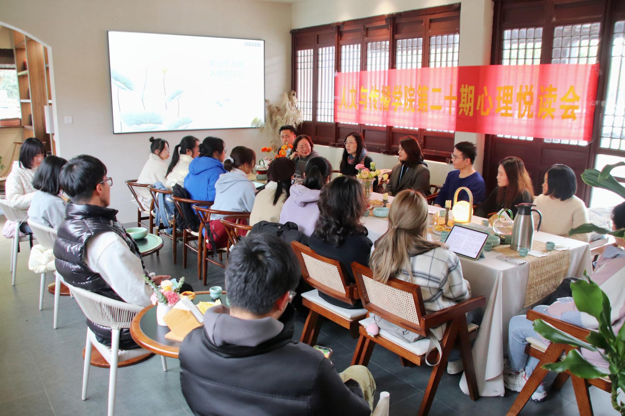 2月28日下午,仲春令月,时和气清,suncitygroup太阳成集团第二十期心理“悦”读会在下沙三沐书苑举办。本次读书会由崔霞老师主讲,袁慧兰老师主持,吴智斌、毋丹、徐键、史婷婷、毛婉婧、马羚凯等老师参加,二十余位同学围桌而坐,共同走进吴晓波的《人间杭州》。