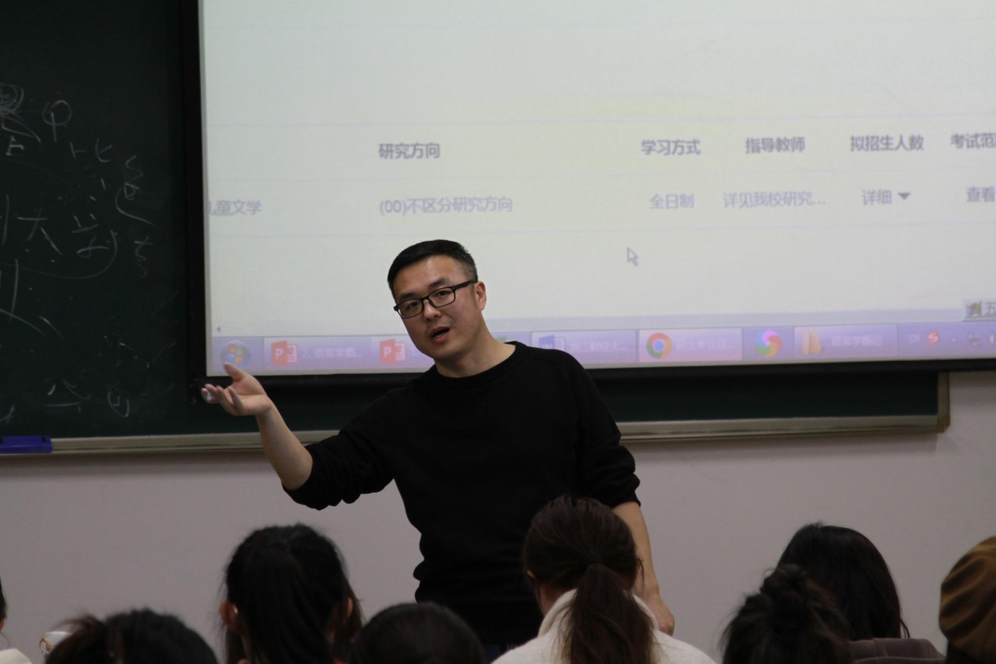 首先,王泉老师向同学们多方位多角度介绍了汉语言文学专业选择出路很广泛,例如考研、国考、省考、事业单位考试、教师编考试、留学以及可以选择自己热爱的工作。王泉老师强调汉语言文学是一门包容性极强的专业,准大四的学生们应该尽快做出属于自己的职业抉择,为之奋力踔发,笃行不怠,朝着目标砥砺前行。