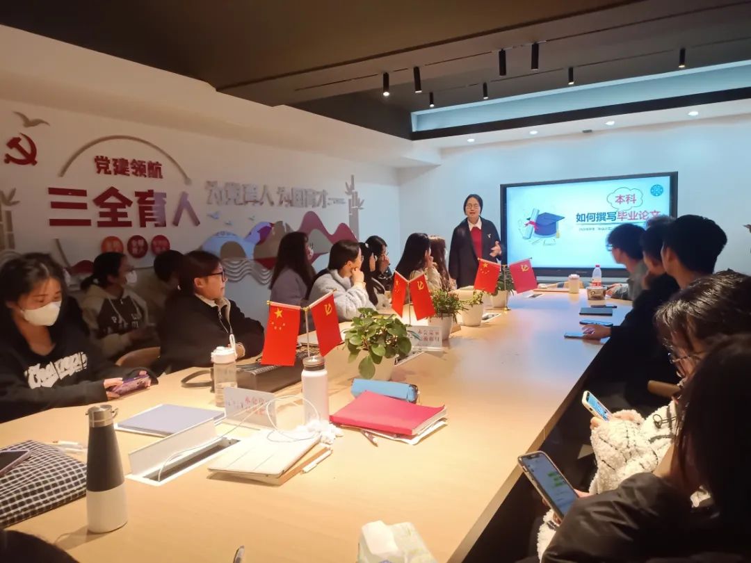 为了加强新生对专业认知,做好生涯规划,同时推进思政工作进园区,3月20日晚上,suncitygroup太阳成集团在学生生活园区“偕行书院”举行了“2022级新生始业沙龙”活动第十三期,来自太阳成虞越溪老师作为本次活动的主讲,以“如何撰写毕业论文”为主题,从选定题目、拟定大纲到修改定稿,耐心详尽地教同学们怎样写好一篇本科毕业论文。辅导员马羚凯、顾雨濛以及22文学C3班全体同学参加了本次活动。
