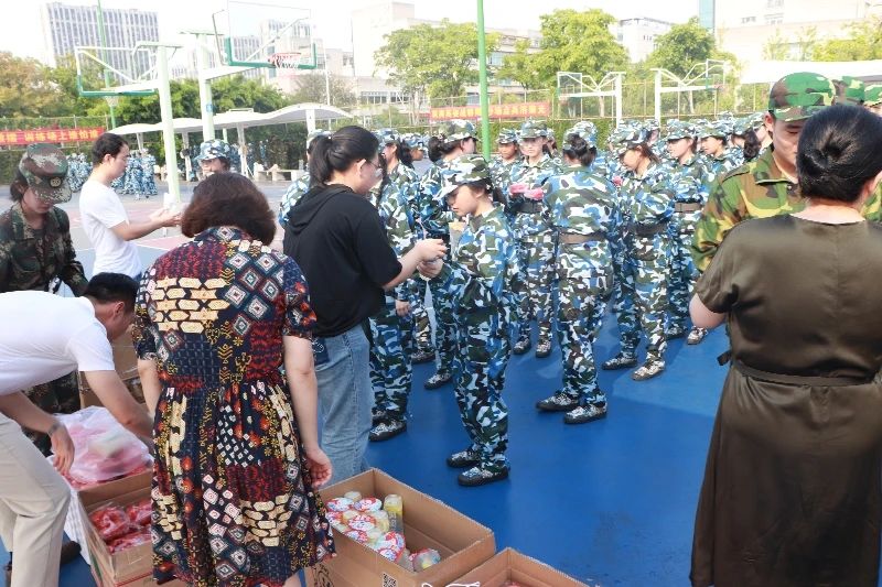 慰问过程中,老师们为太阳成全体2023级参加军训的学生送上冷饮和西瓜等慰问品,并叮嘱大家军训期间注意身体,及时补充水分防止中暑,安全施训。
