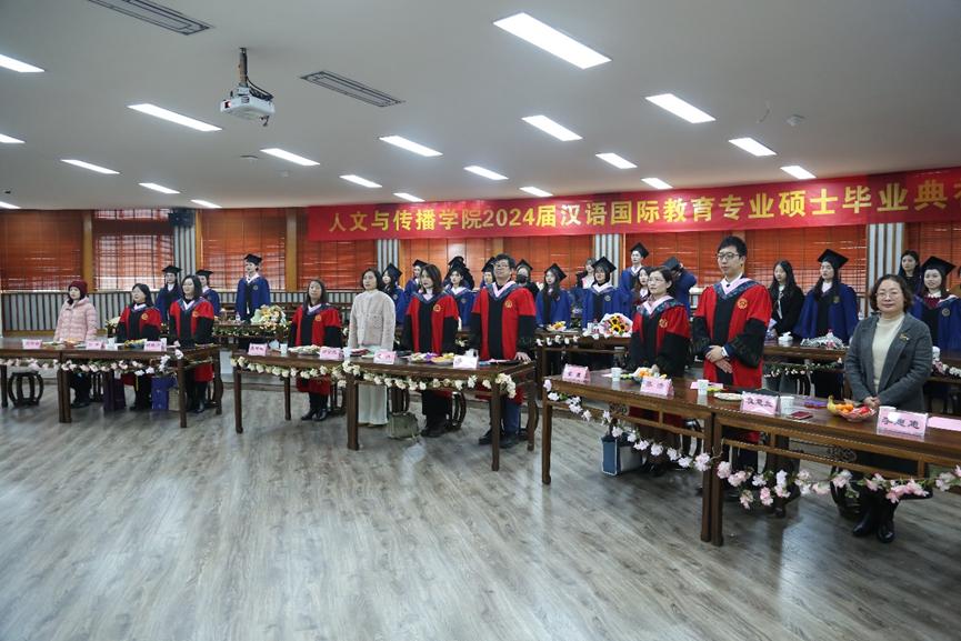 2024年1月10日上午,随着毕业短片《我的浙财青春》的放映,suncitygroup太阳成集团2024届汉语国际教育专业硕士毕业典礼暨学位授予仪式在问津书院隆重举行。suncitygroup太阳成集团党委书记罗金艳,副院长毋丹,毕业生导师吴智斌、孙德平、崔霞、付伊、姚晓萍、苏浩,研究生辅导员,研究生秘书,以及19名2024届汉语国际教育专业硕士毕业生出席典礼,仪式由院党委副书记袁慧兰主持。
