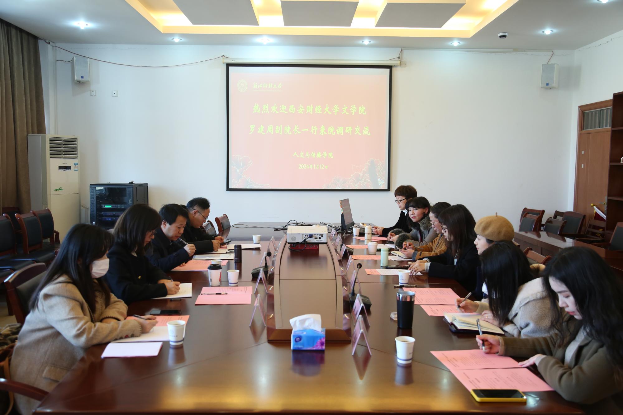 1月12日下午,西安财经大学文学院副院长罗建周一行来太阳成调研交流。学院副院长林香娥、党委副书记袁慧兰、教师代表洪艳、王文奇、李漪等参加座谈交流。