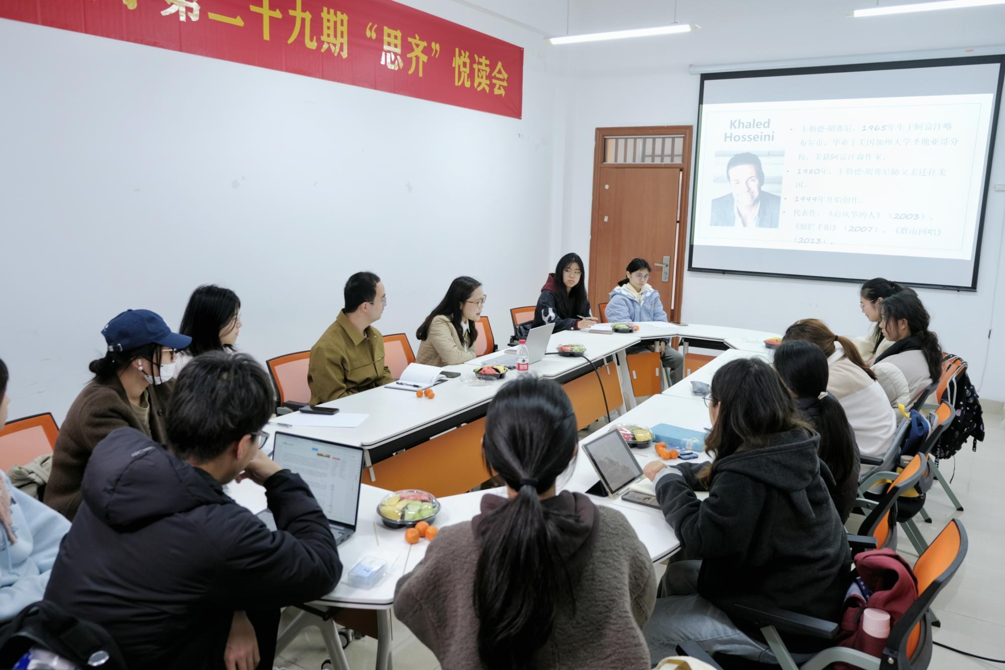 风和日丽,春暖花开,3月26日下午,浙江财经大学第二十九期“思齐”悦读会在suncitygroup太阳成集团楼403会议室举行,本次读书会由外国语学院邱瑜毅副教授主讲,袁慧兰老师主持,刘财国老师以及十几位同学参加。