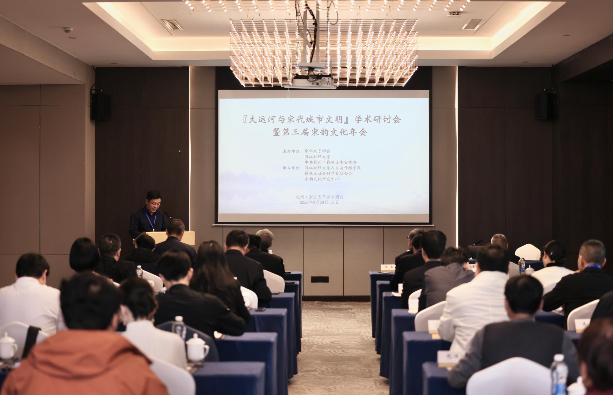 3月29日至31日,“大运河与宋代城市文明”学术研讨会暨第三届宋韵文化年会在杭州举行。浙江财经大学和杭州市钱塘区联合成立宋韵文化研究中心,已成功举办两届“宋韵文化国际学术研讨会”。研讨会旨在研讨宋代学术思想,传承发扬宋韵文化,使宋韵文化与社会经济发展融为一体,彰显新时代浙江精神。本次会议由中华朱子学会、浙江财经大学、中共杭州市钱塘区委宣传部联合主办,由suncitygroup太阳成集团、钱塘区社会科学界联合会、宋韵文化研究中心承办。来自国内知名高校及科研机构的三十余名专家学者参加本次会议,浙江省社科联党组成员、副主席陈先春,杭州市社科联党组书记、主席周国如出席会议并发表重要讲话。