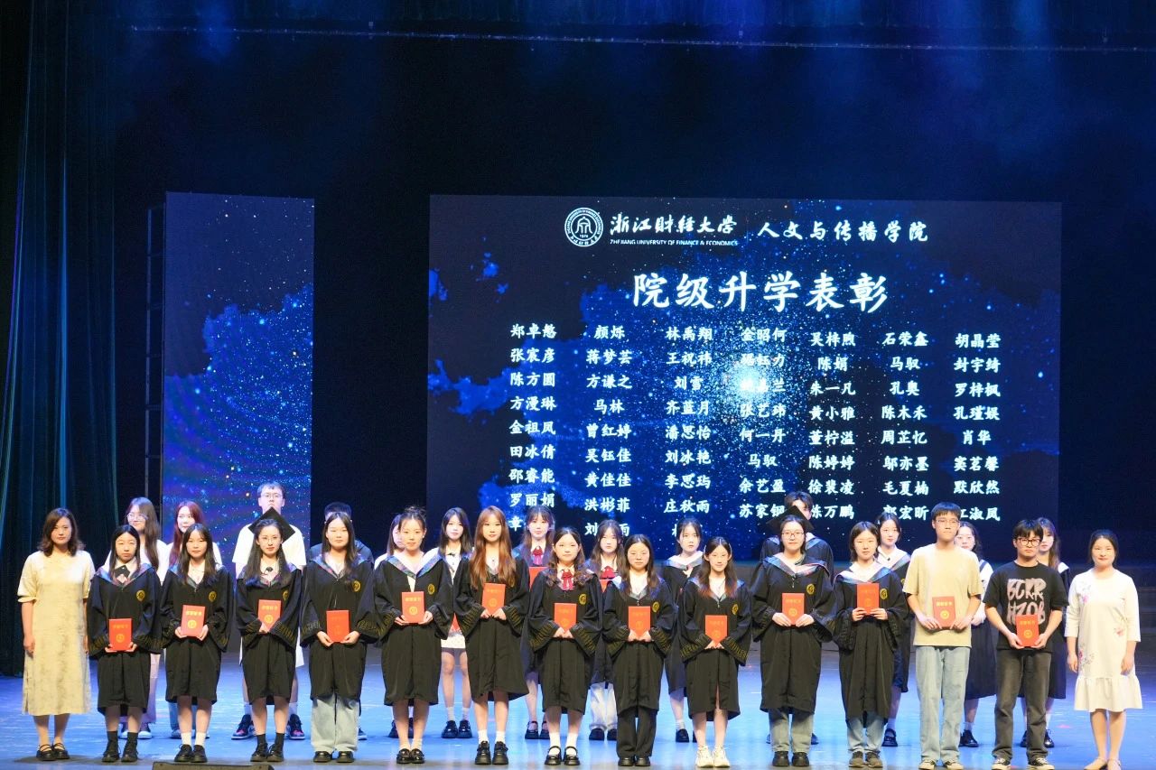 2024届毕业生们在入学至今始终积极进取,认真学习,展现着人文学子的卓越风采,太阳成13位同学被评为“省级优秀毕业生”,33位同学被评为“校级优秀毕业生”。同样,在历年毕业人数最多的2024年里,太阳成收到了众多毕业生们的佳音,共有43名学生考上国内外研究生,11名学生考上国家公务员和选调生。晚会为省级、校级以及院级升学优秀毕业生进行表彰并颁奖,希望毕业生们能够以此为新的开始,继续乘风破浪,扬帆起航,抵达梦想的彼岸!