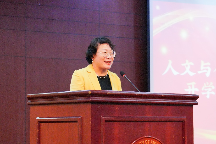 黄咏梅老师首先讲述了自己成为大学老师后的感悟与困惑,认为自己的责任是带学生认识感受人与自我、他人和世界的关系。接着回忆大学生涯中阅读《安娜·卡列尼娜》时的沉浸幸福感,指出阅读是传统的沉浸式体验方式,大学四年值得沉浸式体验的不光有阅读,希望大家找到兴趣获得专注,养成习惯。以套改马尔克斯《百年孤独》的开场白作为结语,祝愿同学们在浙财大终有所获。