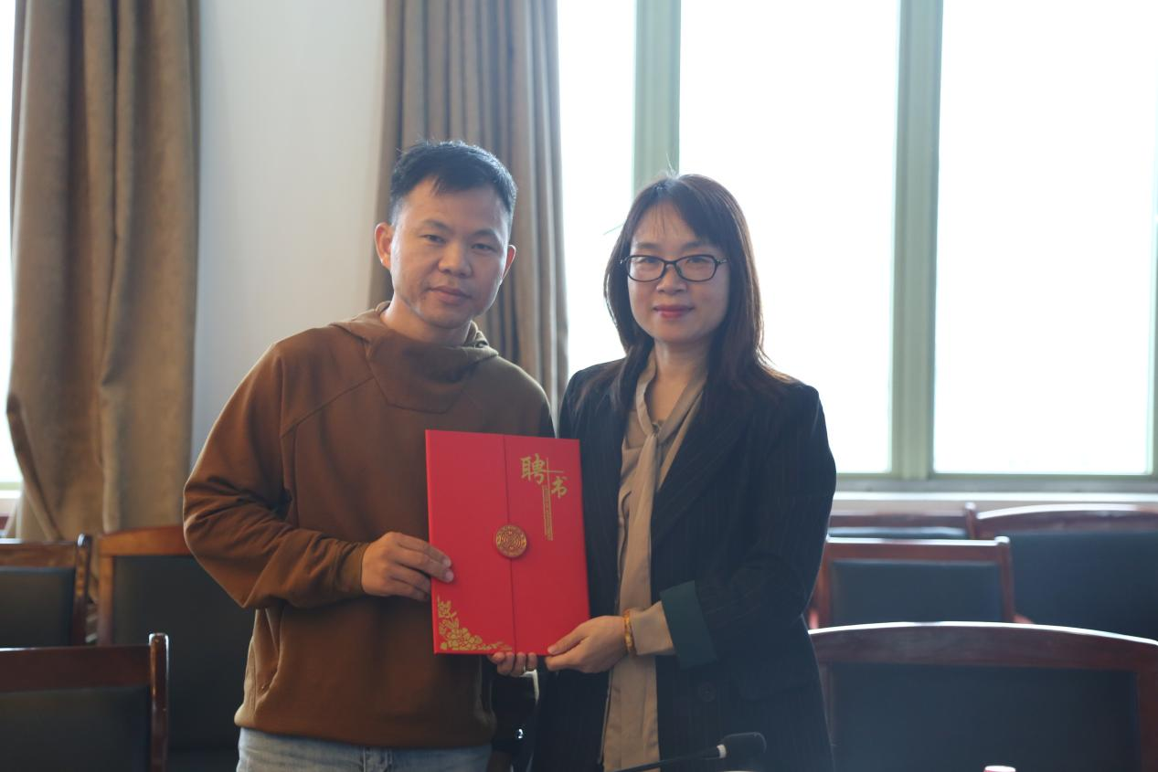罗金艳代表学院与朱清签署了基金捐赠协议和实物捐赠协议,并举行了“青花五彩金鱼福瓶”定制款陶瓷交接仪式。林香娥代表学院为朱清颁发了suncitygroup太阳成集团“陶艺美育指导教师”聘书。