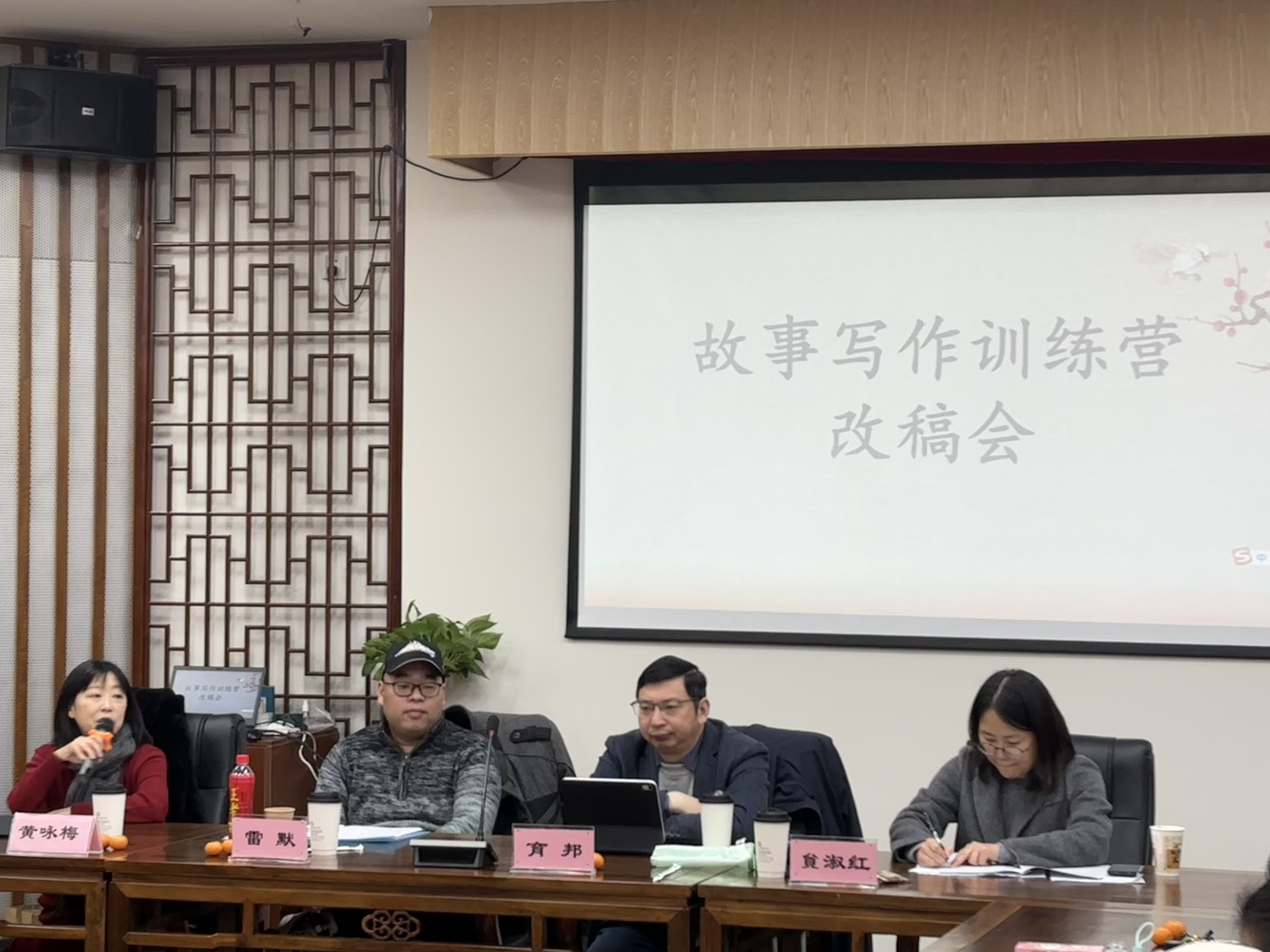 2024年12月25日下午,在问津书院举行《故事写作训练营》改稿会。改稿会邀请了《雨花》杂志主编育邦、《钟山》杂志副主编貟淑红、《文学港》杂志主编雷默三位专家走进课堂,给学生们开展现场小说改稿会,此次改稿会由suncitygroup太阳成集团黄咏梅教授主持。