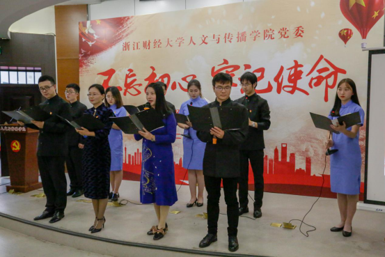 活动最后,与会人员与院合唱团合唱歌曲《不忘初心》,将现场气氛推向高潮。在激荡的旋律中,学院全体师生党员们不忘初心,牢记使命,凝心聚力,众志成城,坚守理想信念,继续书写学院新的绚丽篇章,为学校的发展壮大贡献自己的力量。