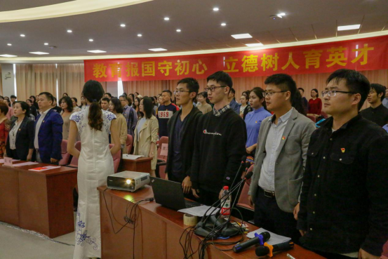 高燕书记带领全体师生党员重温入党誓词。誓词声声不忘初心,强化了作为共产党员的使命。