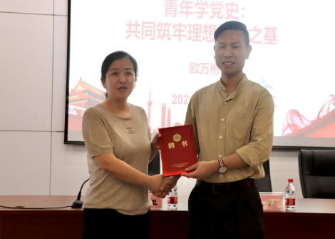 专题党课前,学院党委书记高燕向欧万彬老师颁发了suncitygroup太阳成集团分党校校外特聘导师证书。欧万彬老师是复旦大学马克思主义中国化研究博士,主要从事青年思想政治教育和马克思主义中国化研究工作,具有较高的理论研究水平和丰富的青年工作实践经验,近年来,公开发表论文15篇,参与或主持国家级、省级课题多项。