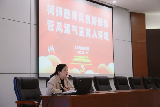 会上,学院党委书记高燕带领全院教职工集体学习《浙江财经大学建立健全师德师风建设长效机制实施办法》《浙江财经大学教师师德失范行为负面清单及处理办法》《浙江财经大学开展师德专题教育实施方案》《新时代高校教师职业行为十项准则》等文件,并进行案例警示教育。要求全体教师要努力提升自身道德素质,坚守正确的政治方向,爱国守法潜心育人。建立良好的师生关系,用榜样力量和人格魅力感染、感召、影响学生,真正把教书育人和自我修养结合起来,维护良好的教师职业形象,以德立身、以德立学、以德施教。会议还强调疫情防控工作及学院发展及安全稳定等相关事宜。会上签署了《师德师风承诺书》、《教学科研人员廉洁从教从研承诺书》。