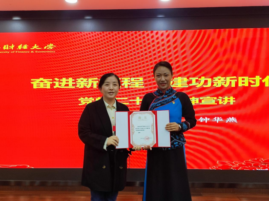 钟华燕老师表示,感谢suncitygroup太阳成集团党委的信任,珍惜校外党校教师身份,认真履行好兼职党校教师职责,为分党校学习贯彻党的二十大精神和学院党建活动开展贡献力量。